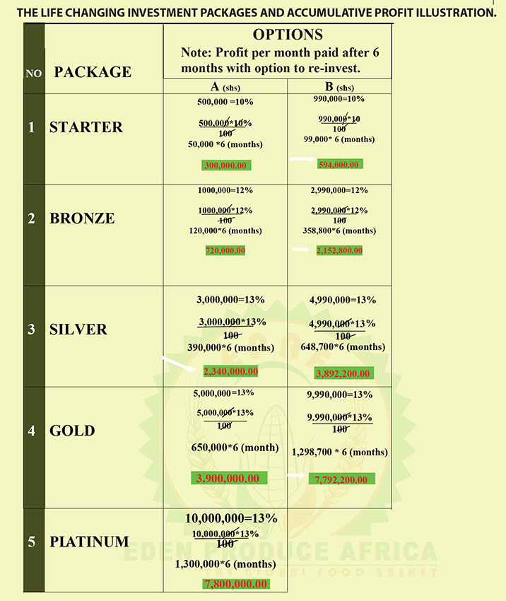 Eden Produce Africa (EPA-Farm) has opened doors to all smart investors both individuals and companies who want to have extra income to invest in this great future investment opportunity.